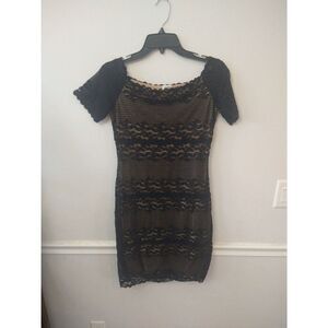 Cache dress Black color Lace On or off the shoulder No label tag Fits like a small See pics for measurements