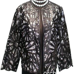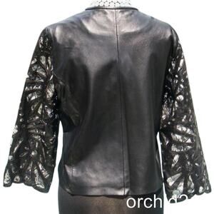 Cache Laser Cut Leather Lace Swing Jacket Top New Peek A Boo Black White $398