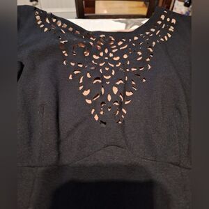 Made from a comfortable rayon blend fabric, this dress is wire-free and has a solid pattern. The sleeveless design and laser-cut accent add a touch of elegance and sophistication. Available in size 6, this dress is perfect for any season, whether it's winter, summer, fall, or spring.
