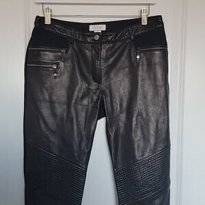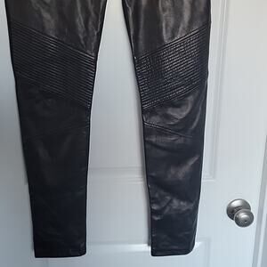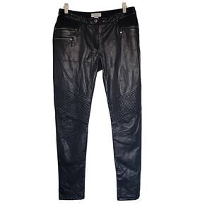 Leather front with spandex back for easy fit. Cool moto styling with zip pockets.