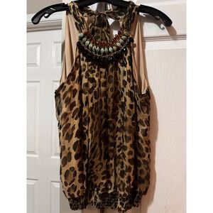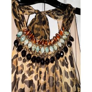 Cache Leopard Print Silk Beaded Halter Top Sleeveless Animal Glam Party M