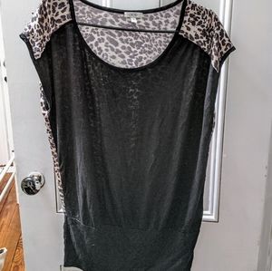 - Stretchy and really comfortable. Leopard print at the back and solid black at front.