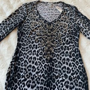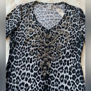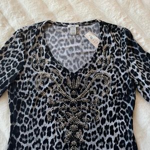 Cache Leopard Top. Leopard print in gray colors and black with Beautiful studs design. New never worn.
