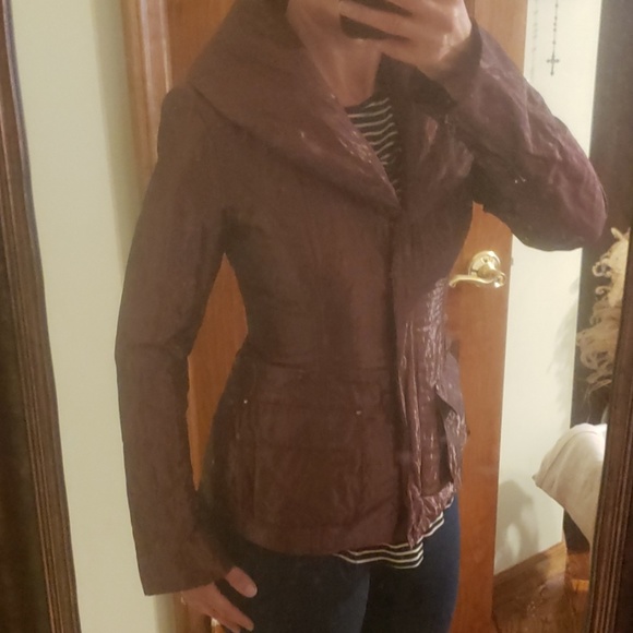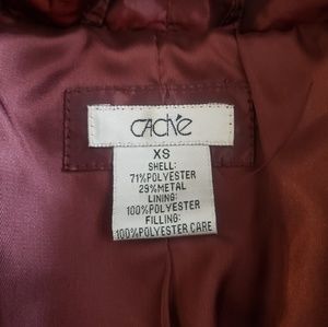 Shiny purple stylish Cache light weight jacket wuth brass zipper and buttons.