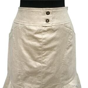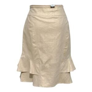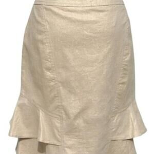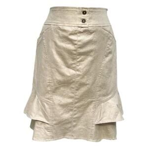 Cache Linen Blend Gold Metallic Lined Skirt Self Belt Tiered Ruffle New $98 NWT