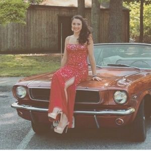 Beautifully, dazzling long dress. Size 0. Wore it for prom once and does not fit me anymore. Original price was $420.00 from Caché.