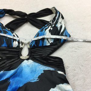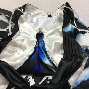 Cache Maxi Dress Size 2 Womans Blue Black Satin Open Back Cut Out Evening Y2K a70