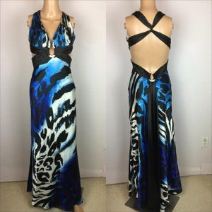 Cache Maxi Dress Size 2 Womans Blue Black Satin Open Back Cut Out Evening Y2K