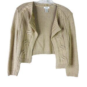 Cache' Medium Shrug Sweater Bolero Shoulder Cover Gold Metallic Threads EUC