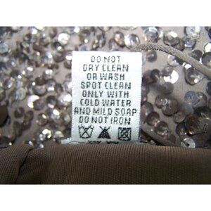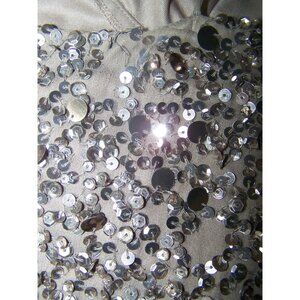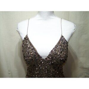 Little Cache silk mini dress with bronze sequins, spaghetti straps, light bra pads, completely lined, back zip.