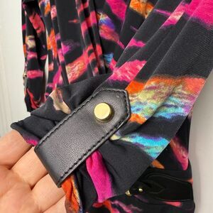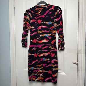 Cache Mini Dress Womens XS Colorful Abstract Y2K Wrap 3/4 Sleeve V Neck Club