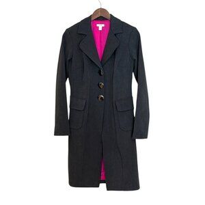 Cache Mirror Button Front Jacket Coat Gray Pink Lining Pockets Size Small