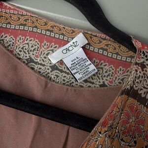 Chic Cache blouse with intricate multicolor patterns. Ideal for a trendy, casual outfit.