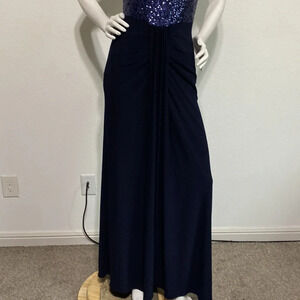 Cache Navy Blue Sleeveless Sequin Maxi Gown Dress