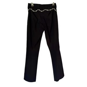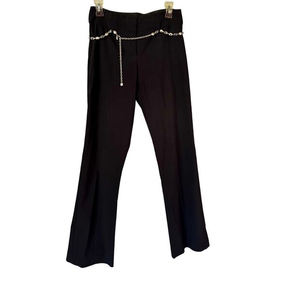Cache Navy Pant with Metal Chain Enamel Belt Stretch 2" Waist Band Flare Leg