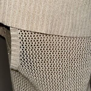 Item: Cache L Cream & Gold Silk Blend Metallic Open Knit Cowl Neck Sleeveless Sweater
