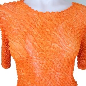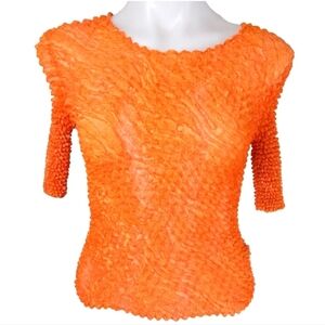 Item: Women's Orange Scrunchy Popcorn Textured Top Vintage 90's Y2K Orange Marble Swirl
