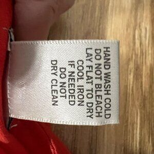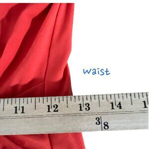 This versatile dress features a flattering wrap silhouette with a gold accent ring detail. Its vibrant red hue and draped design enhance a polished appearance.