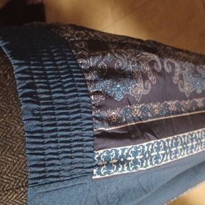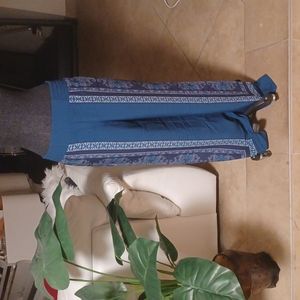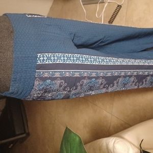 Wide leg pant, tile design borders the sides, wide elastic waistband.