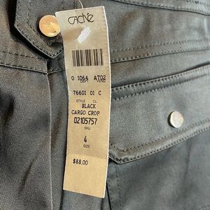 Cache Pants Black Sexy Satin Cargo Crop Zipper Size 4 NWT Deadstock