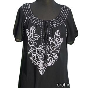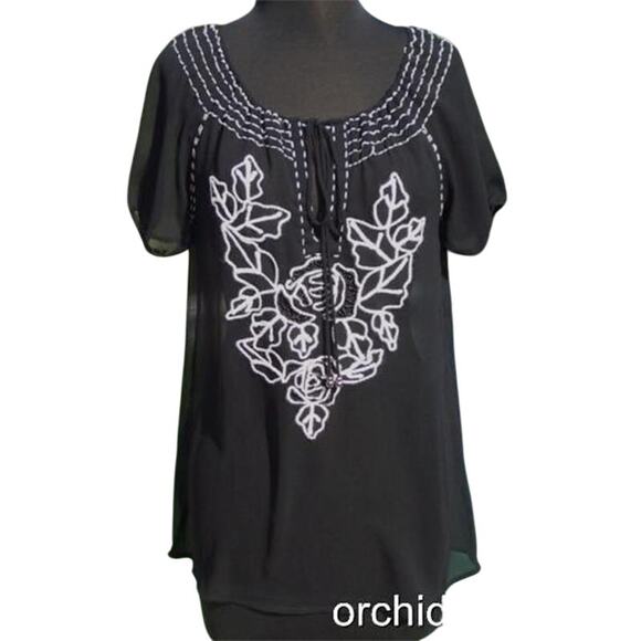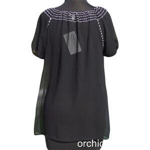 Cache Peasant Tunic Boho Embroidery Embellished Silk Top New Key Hole NWT $138