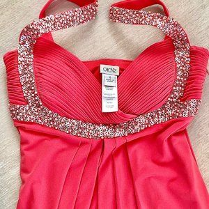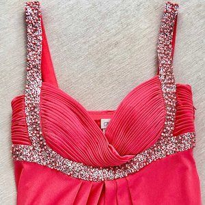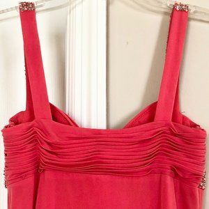 Stunning floor length silk dress by Cache in a beautiful pink coral color