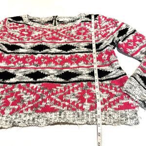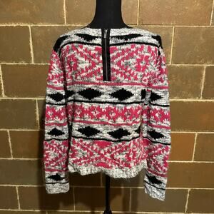 Cache Pink Geometric Knit Fuzzy Boxy Cozy Sweater Women’s L Large