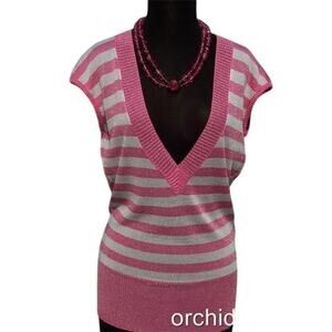 Cache Plunging V Neck Pink White Metallic Knit Top New Size S/M Stretch $88 NWT