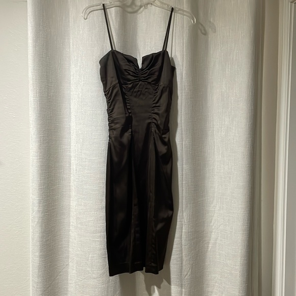 Gorgeous skin tight dress. Stitching slightly frayed on one strap. Metal that holds the V in place is coming through but doesn’t stick out when worn.