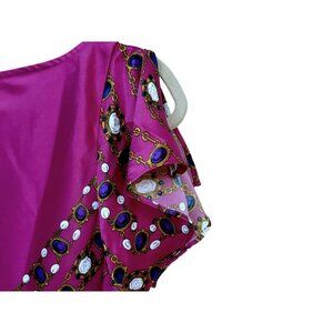 Cache Pullover Drape Neck Belted Magenta Print Tunic Top Flutter Sleeve Sz S