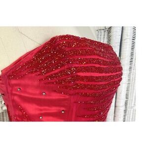 Caché Raspberry Pink Strapless Dress Rhinestone Gown Formal Prom M