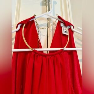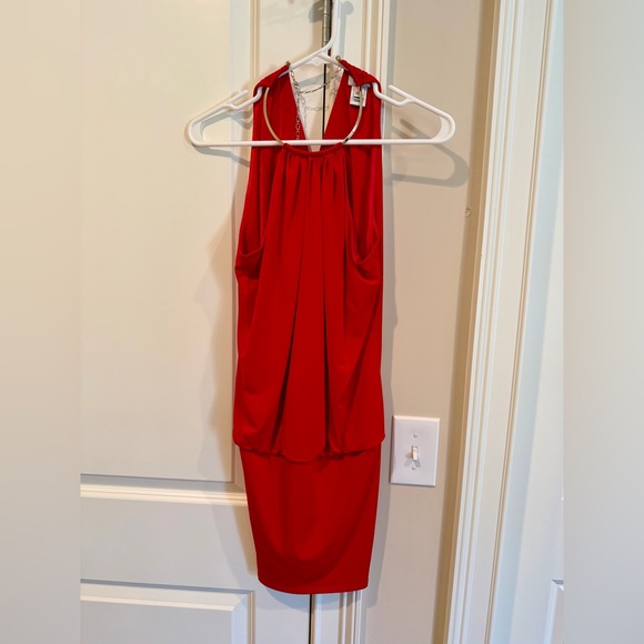 Stunning red mini dress by Cache. Halter neck design. Perfect for a night out.