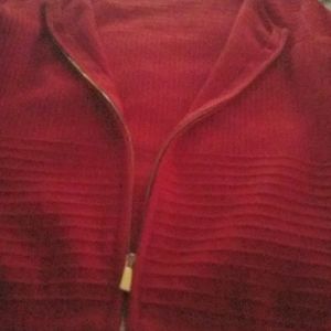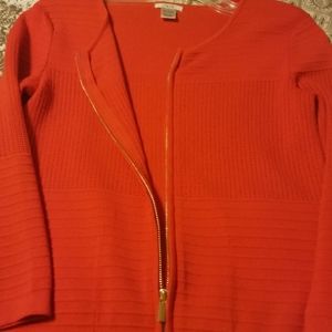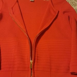 Cache Red Sweater it's a nice red check last picture. Like new. Elegant sweater with a gold zipper. Small size