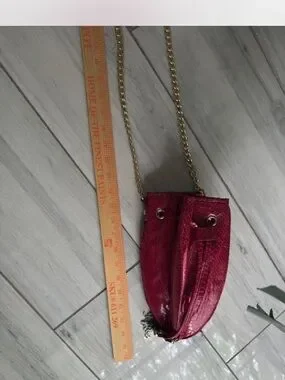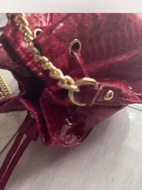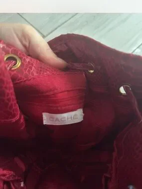 Cache Red Textured Drawstring Mini Bag with Gold Chain