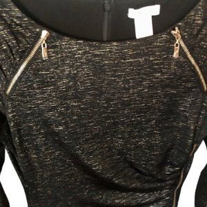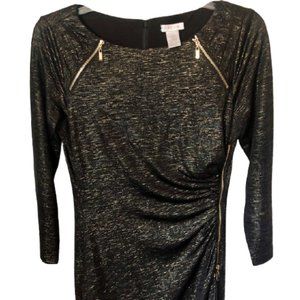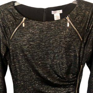 Cache Ruched Front Sheath w/ Goldtone Zippers - Black/Gold - M