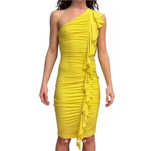 Cache, Rushed Ruffles One Shoulder Cocktail Dress,