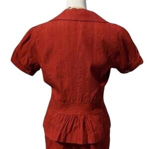 Cache Rust 100% Raw Silk Removable Self Belt Crop Pant New NWT Linen Feel $108