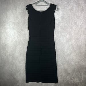 Cache Sheath Dress Womens Size 6 Black Embellished Cross Front Sleeveless Midi Party Formal
