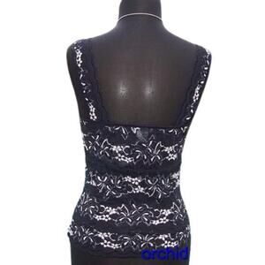 Cache Sheer Illusion Lace Mesh Cami Top New Black White Stretch NWT $98