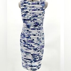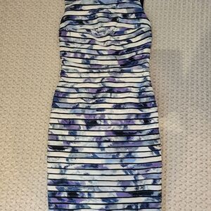 Pretty multi color shift dress in purple, blue and white. Has built in lining.
