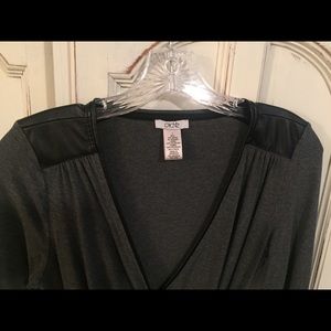 Gray with black faux leather trim. Great feel of this stretch material and the deep plunge neck is super sexy!