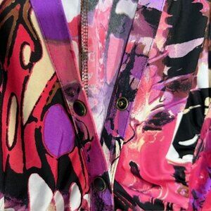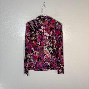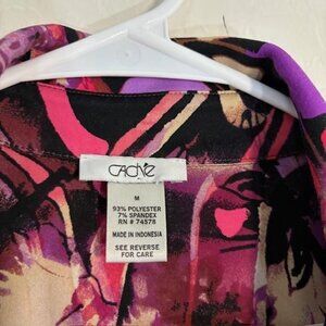 Cache Shirt Womens Medium Pink Purple Abstract Snap Front Long Sleeve Stretch