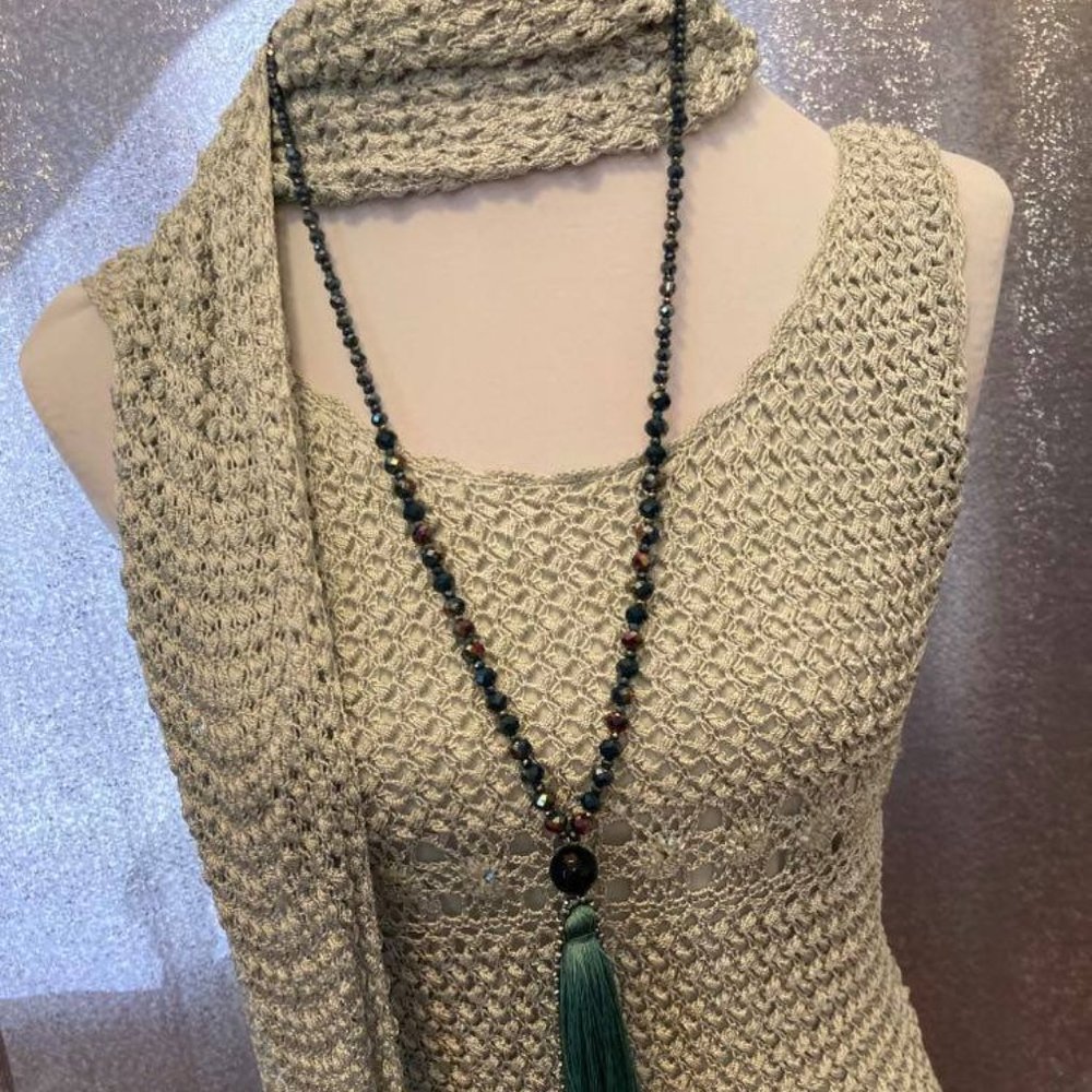 This one is a beauty Cache shirt, top made with stones and beautiful scarf . I also have matching to it purse Liz Claiborne . This is classy and gorgeous