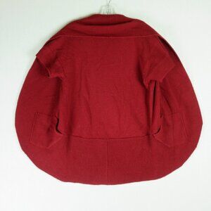 Cherry red knit cocoon sweater. Short sleeve. Cowl neck. Pockets.