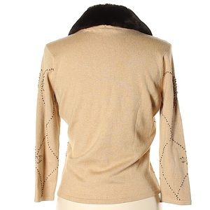Detachable collar to Dress it up or down. 72% silk,15% spandex, 13% cashmere.