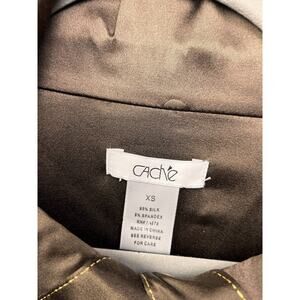 Cache Silk Jacket Womens XS Brown Gold button Metallic Shimmer Pockets Y2K