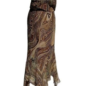 Cache Silk Tiger Animal Metallic Embellished Hankey Hem Lined Skirt New $188 NWT
