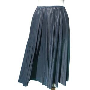 This Cache Luxe pleated skirt is the perfect addition to your wardrobe. The metallic accents and soft poly material make it a great choice for any occasion, whether you're dressing up for a wedding or keeping it casual for a day out. The elastic waist and stretch features ensure a comfortable fit for sizes XS to XL, while the knee-length style and solid gray blue color give it a timeless look. Pair it with your favorite top and shoes to complete the perfect outfit. This skirt is versatile enough for any season, whether it's winter, summer, fall, or spring. Don't miss out on this NWT item that retails for $178!