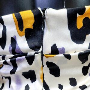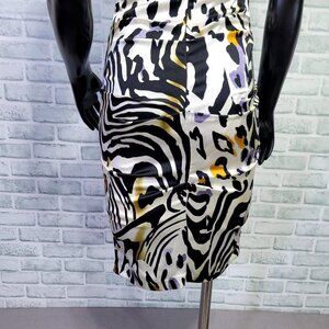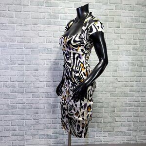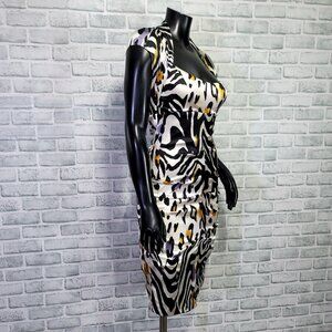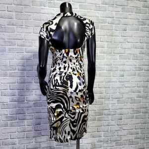 Cache Size 6 Silk Animal Print Ruched Cutout Back S/S Knee Length Dress Cocktail, Evening, Prom, Wedding, Event. Zip back closure, built in cups