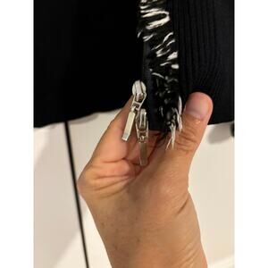 Cache Size S Black Cream Frail Ruffle Trim Cardigan Sweater Women